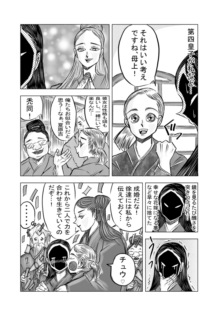 胡散臭い出自、5つ以上ある出生説に本人も嫌気がさし、いつか自分は紛い物の皇子として消されるのではないかという漠然とした不安を有している。